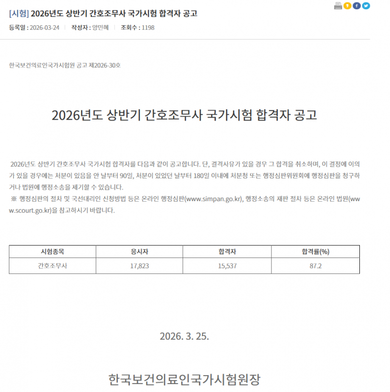 2026년도 상반기에 간호조무사 국가고시 합격자 발표가 있었는데요~~